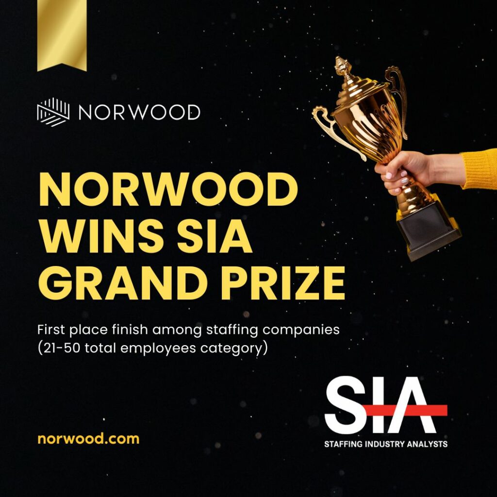 Read MoreNorwood a Grand Prize Best Staffing Firm to Work For winner from Staffing Industry Analysts (SIA)