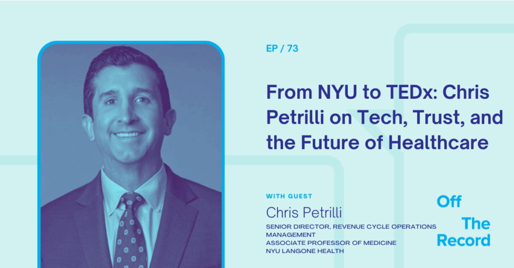 Listen to the podcast here. Fans of Off the Record may recall my recent episode with Chris Petrilli, Director of Revenue Cycle of Operations at NYU Langone, who joined me to discuss his experience delivering a TEDx Talk on artificial intelligence. Chris was well prepared and delivered a great lecture, which you should definitely check…