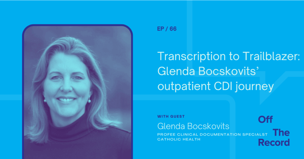 Listen to the episode here. Outpatient CDI is not a traditional discipline—and so it stands to reason that its practitioners don’t always hail from traditional backgrounds. One such person is Glenda Bocskovits. I’d call her a former transcriptionist, but she still practices that craft with the Mayo Clinic. But Glenda has since expanded her…